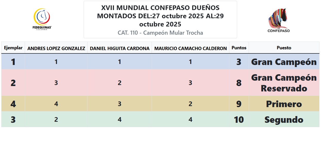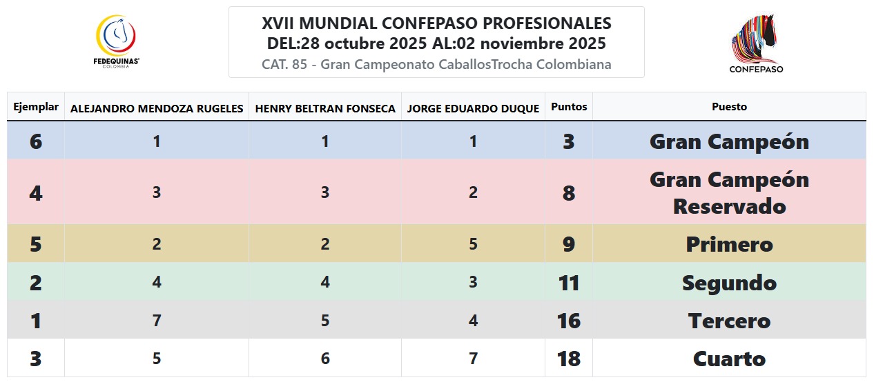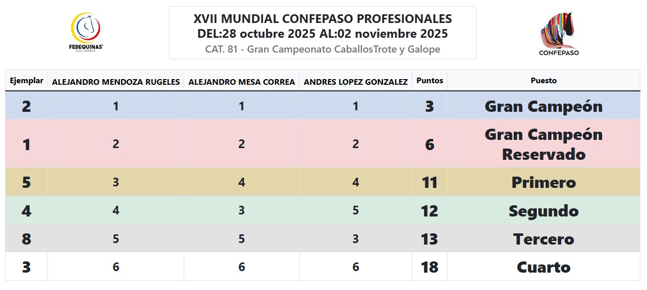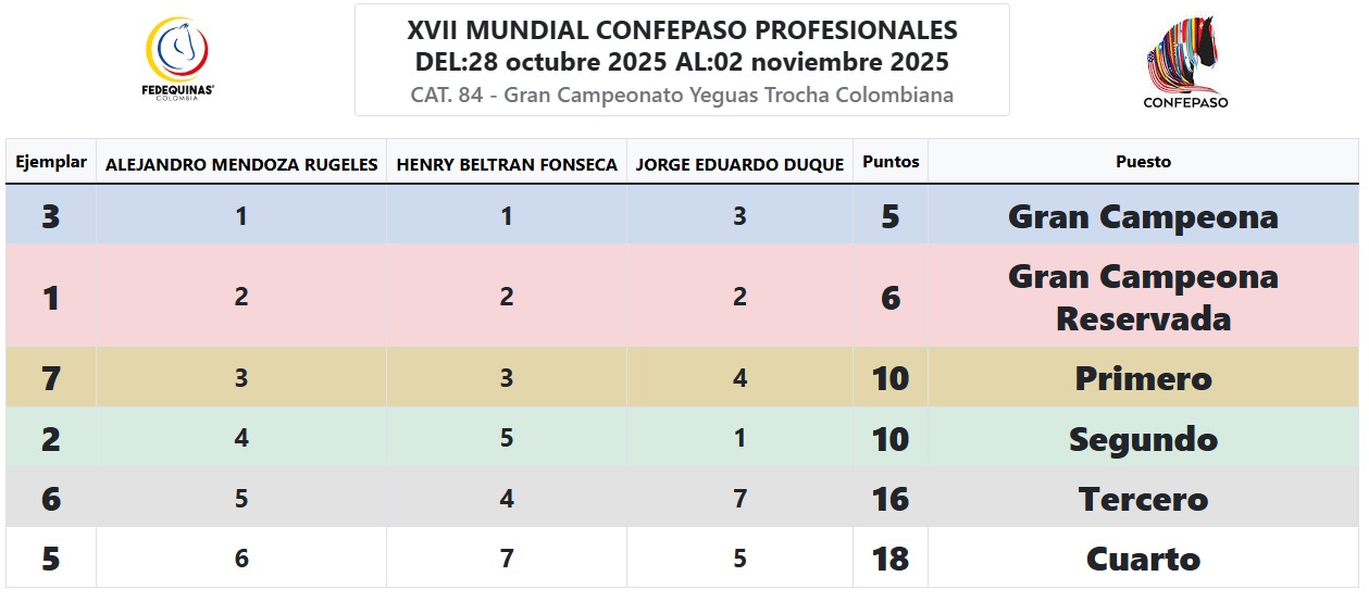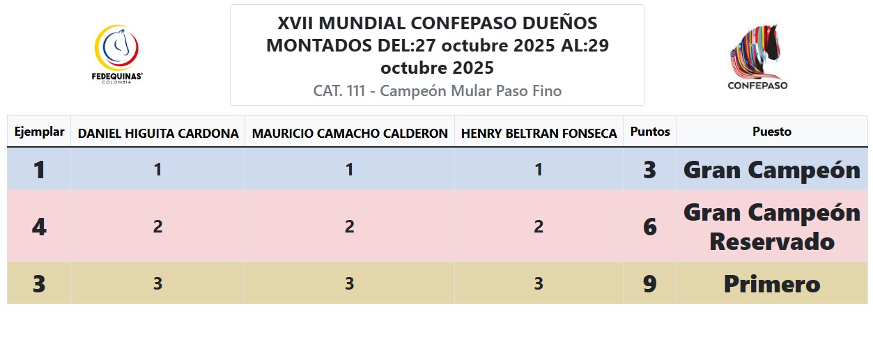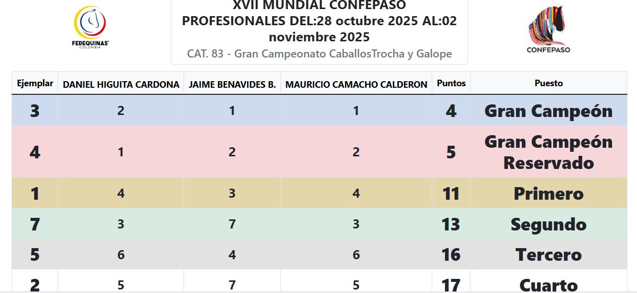 RESULTADOS CAMPEONATOS – TABLERO -MUNDIAL XVII Mensaje de éxito Nombre Correo electrónico Suscríbete Contacto Carrera 64 #98B-36 Bogotá, Colombia contacto@fedequinas.org (+57 1) 742 1179
